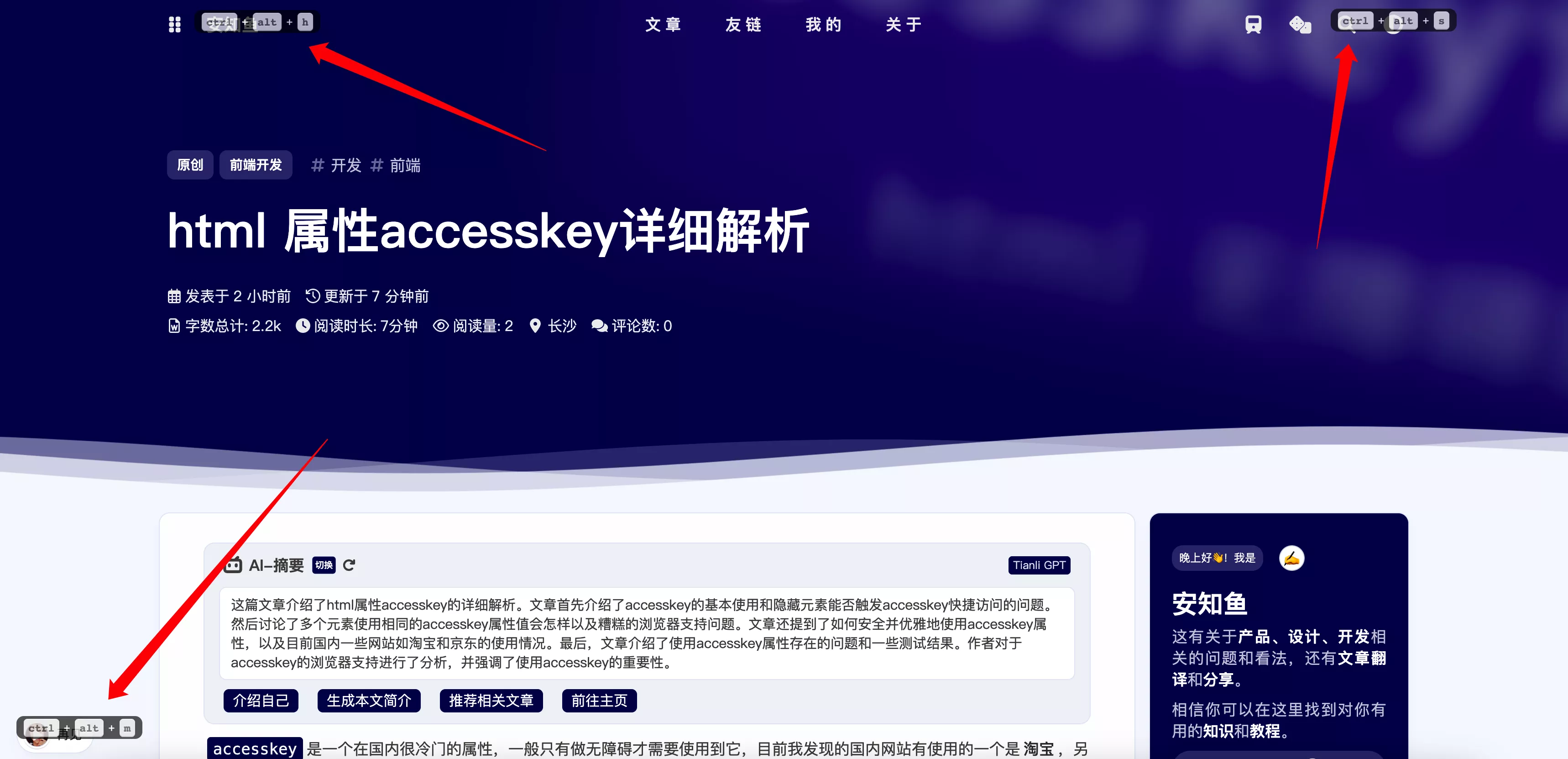 • 支持了Accesskey快捷键,可以直接按下shift + ?组合键以查看快捷键选项。